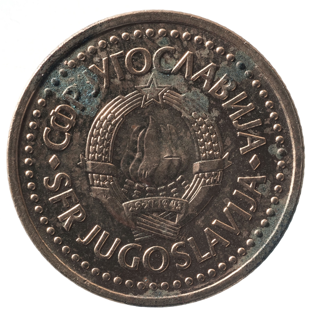 U sredini državni grb. U gornjem djelu uz rub polukružno napisan tekst SFR JUGOSLAVIJA na latinici i ćirilici.