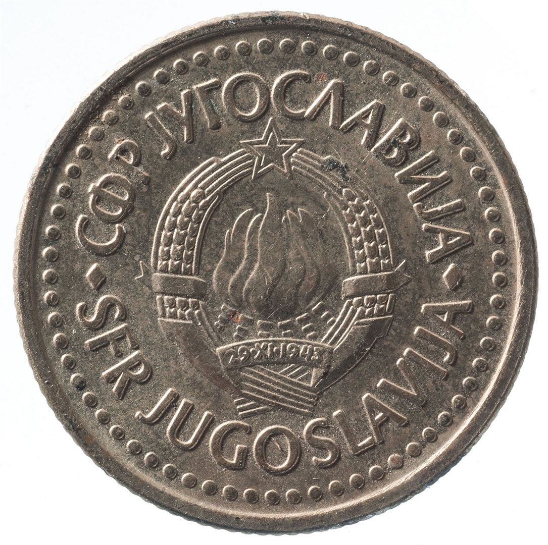U sredini državni grb. U gornjem djelu uz rub polukružno napisan tekst SFR JUGOSLAVIJA na latinici i ćirilici.