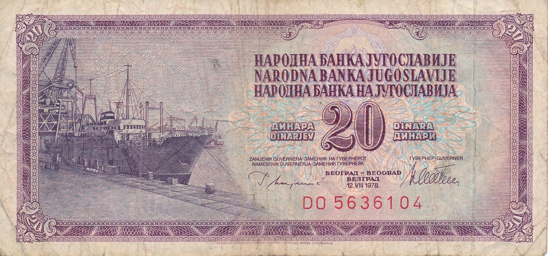 Na lijevoj strani prikaz broda u luci. Na desnoj strani nalazi se serijski broj, potpisi i nominala.