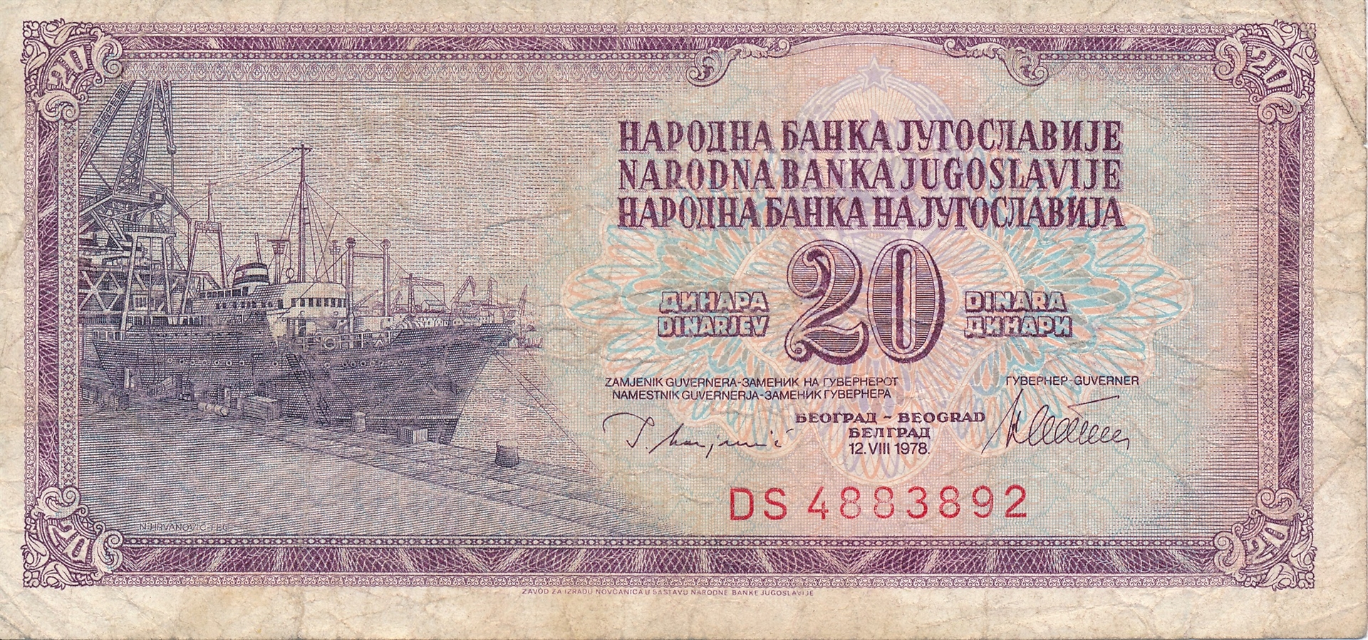 Na lijevoj strani prikaz broda u luci. Na desnoj strani nalazi se serijski broj, potpisi i nominala.