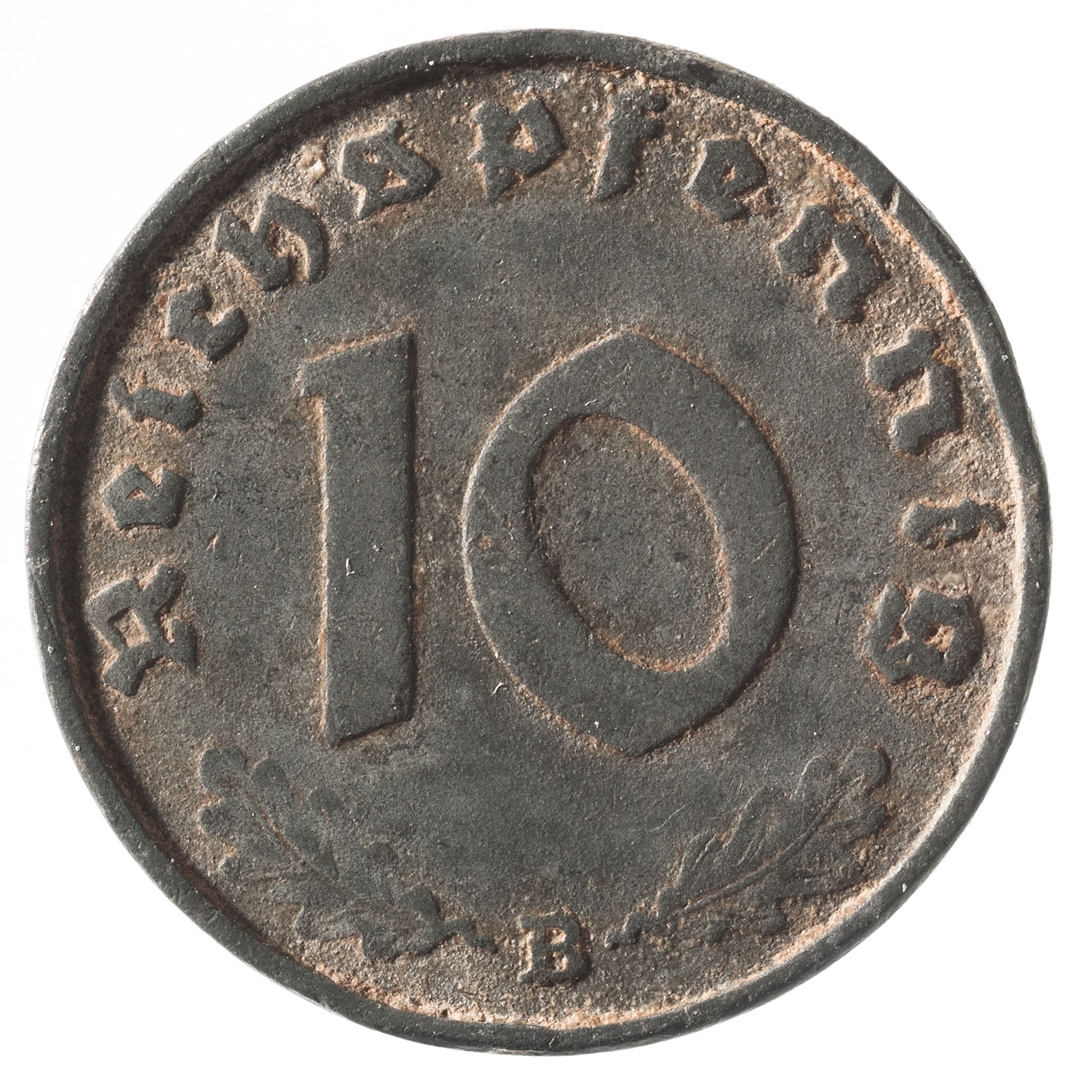 Revers: U sredini broj 10, a uz rub natpis Reichspfennig. Pri dnu između dva hrastova lista nalazi se oznaka kovnice B.