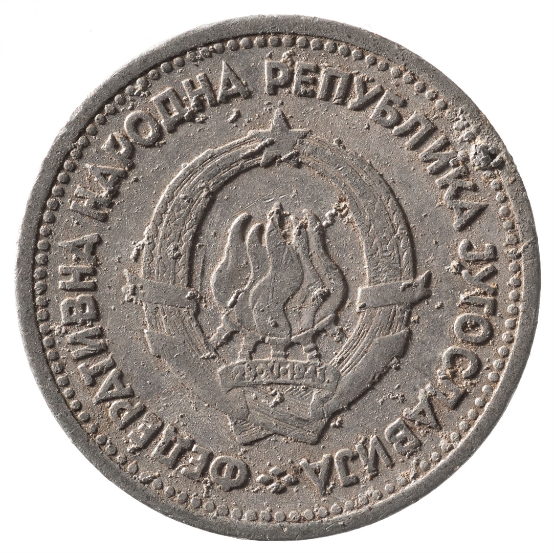 U sredini broj 1 (nominala), a ispod njega tekst DINARA. Duž cijelog gornjeg ruba polukružno poredano 8 petokrakih zvjezdi. U sredini uz lijevi i desni rub upisana godina 1953.