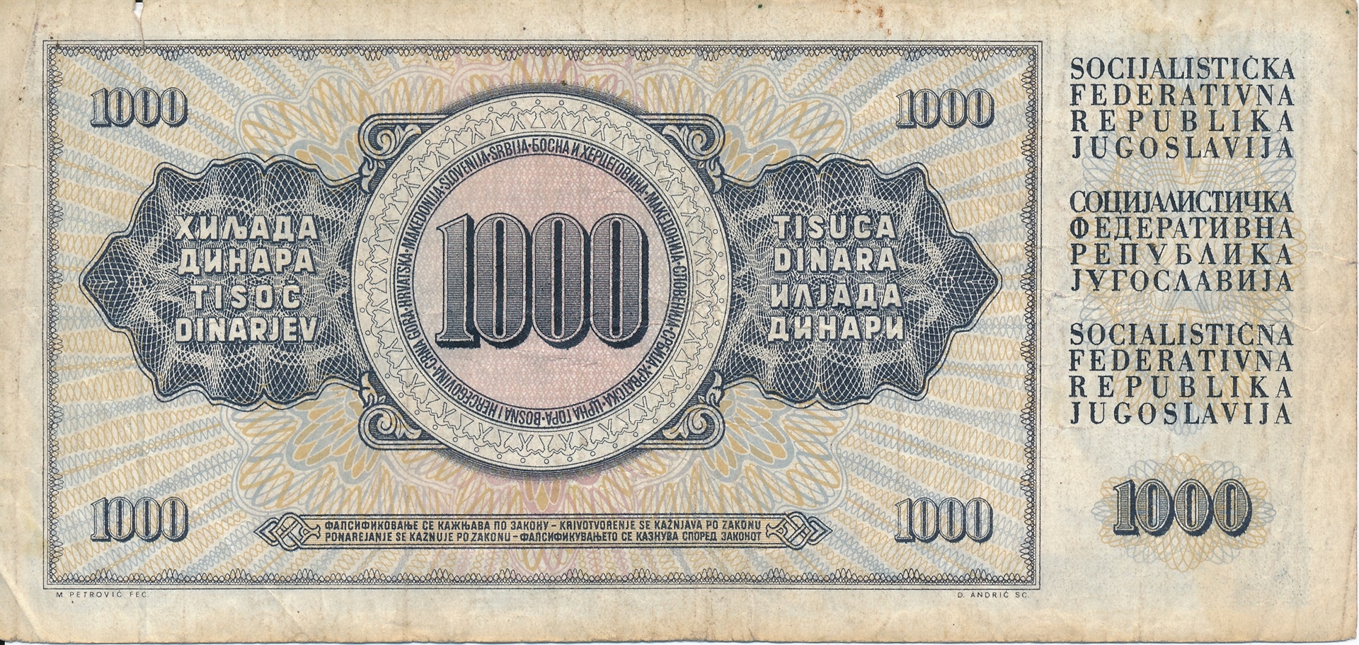 Novčanica, 1000 Dinara