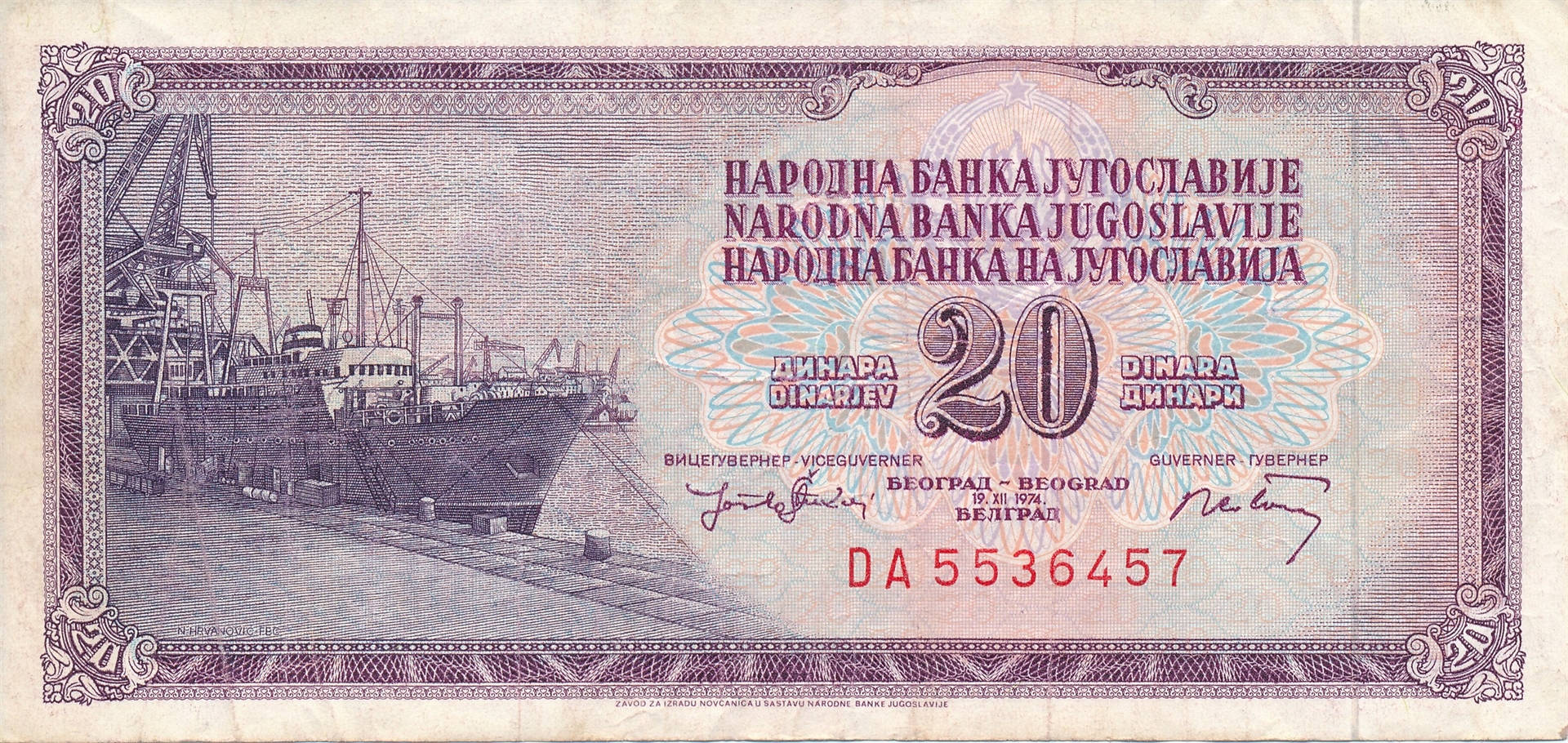 Na lijevoj strani prikaz broda u luci. Na desnoj strani nalazi se serijski broj, potpisi i nominala.