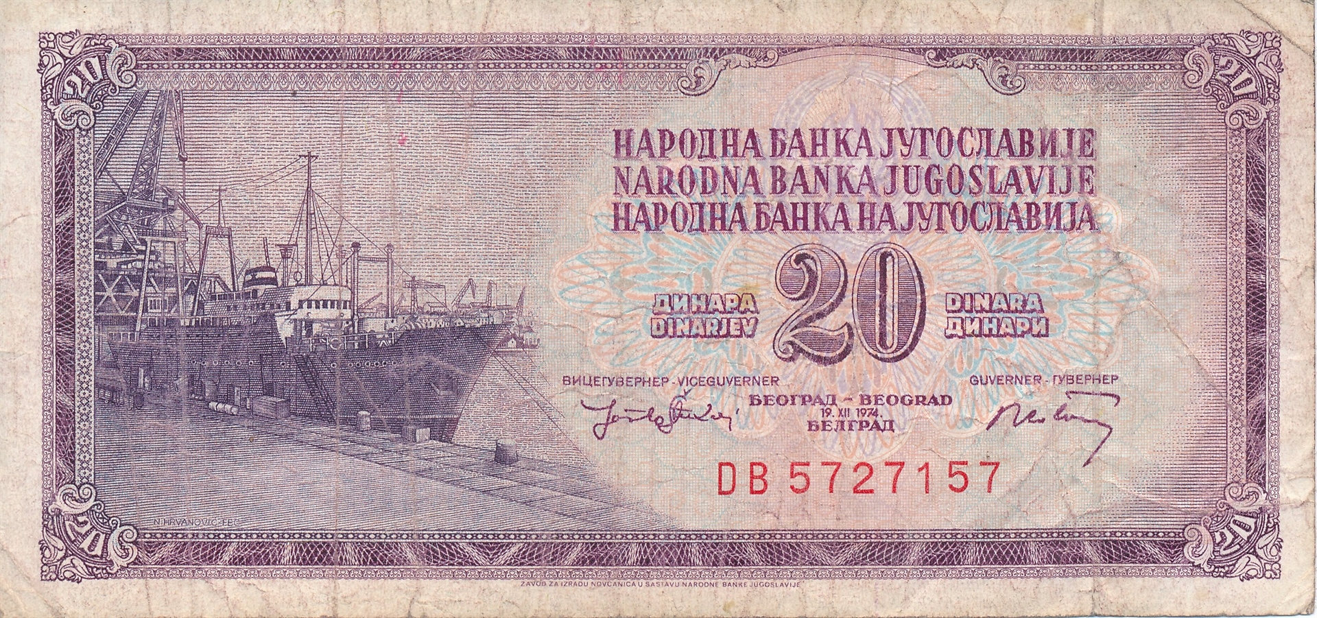 Na lijevoj strani prikaz broda u luci. Na desnoj strani nalazi se serijski broj, potpisi i nominala.