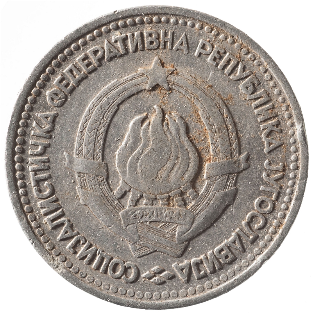 U sredini državni grb. U gornjem djelu uz rub polukružno napisan tekst SOCIJALISTIČKA FEDERATIVNA REPUBLIKA JUGOSLAVIJA na ćirilici.