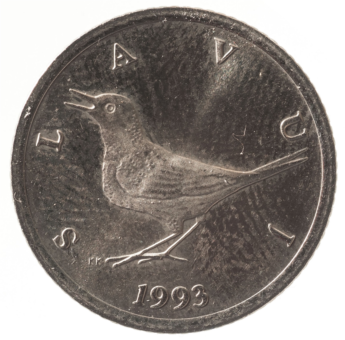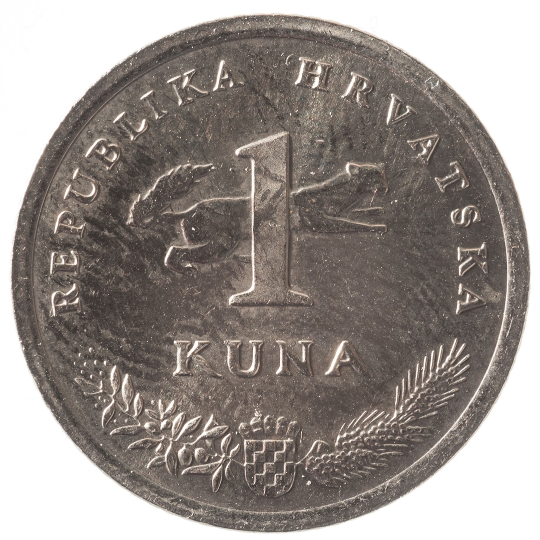 Avers: U središnjem dijelu nominala "1 KUNA", a u pozadini prikaz kune zlatice, zvijeri iz porodice kuna, skupocjena krzna, u trku nadesno. U gornjem polukrugu, uz rub, natpis "REPUBLIKA HRVATSKA". Uz donji rub, u središnjem dijelu, prikaz grba Republike Hrvatske. Lijevo od grba, polukružno uz rub, stilizirani je prikaz maslinove grančice s plodovima, a desno, također polukružno uz rub, stilizirani je prikaz pšeničnoga klasja. Revers: U središnjem dijelu prikaz slavuja, ptice iz porodice drozdova, kružno, uz rub, natpis "SLAVUJ". Uz donji rub, u središnjem dijelu, godina kovanja.