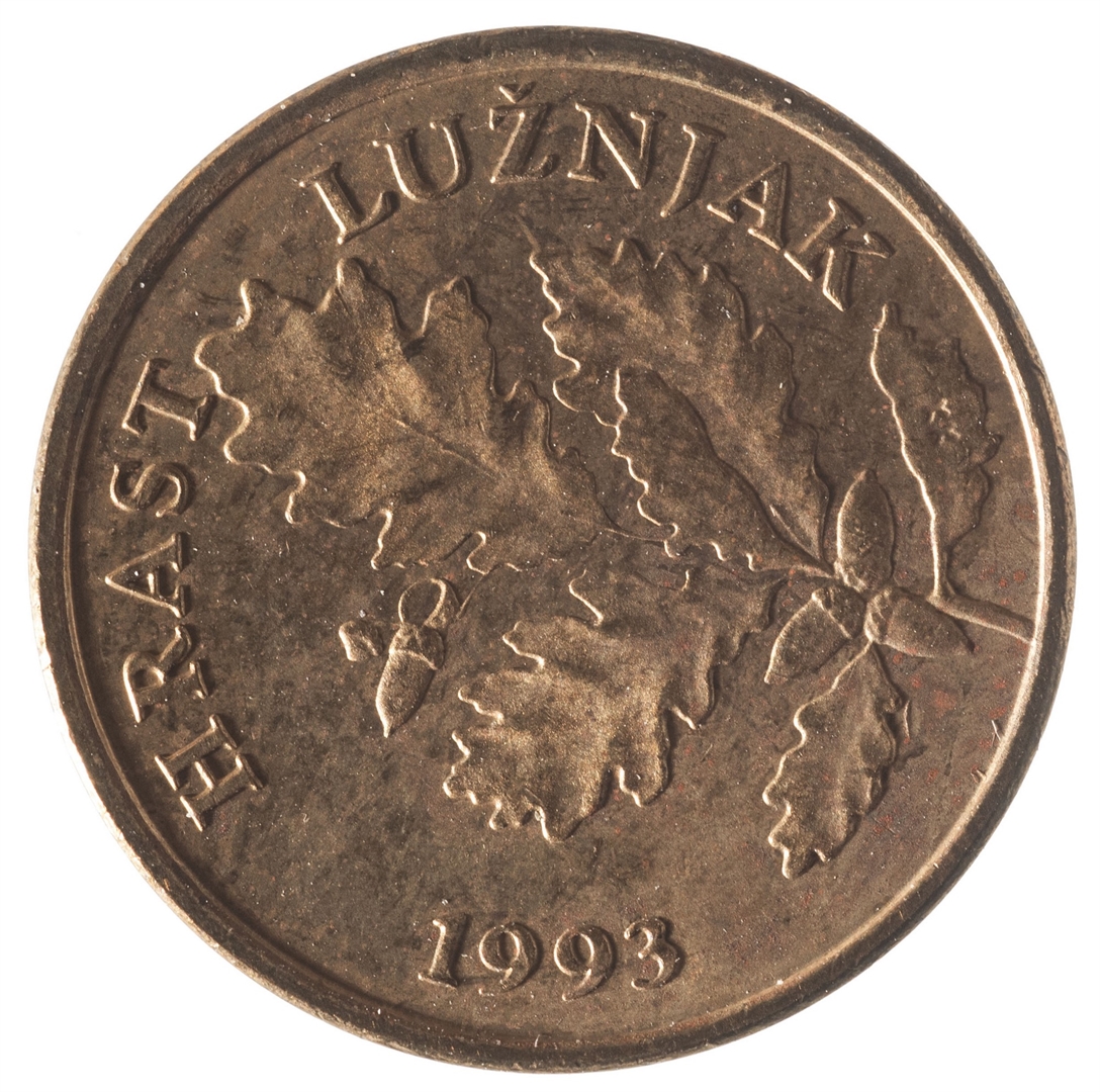 U središnjem dijelu prikaz stilizirane grane hrasta lužnjaka s plodovima. Iznad prikaza, kružno uz rub, natpis "HRAST LUŽNJAK". Uz donji rub, u središnjem dijelu, godina kovanja.