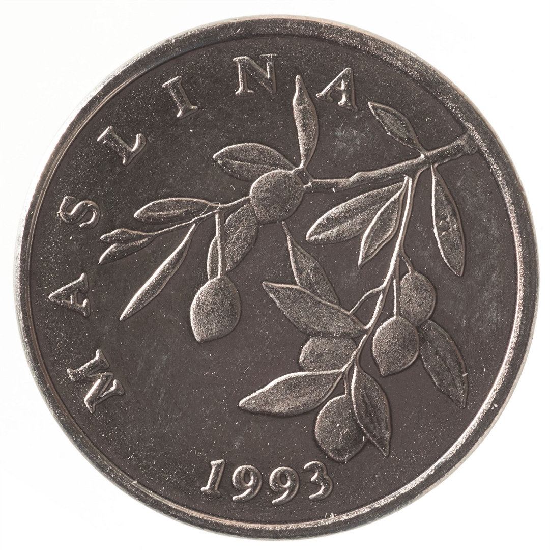 U središnjem dijelu stilizirana grana masline s plodovima. Polukružno, uz lijevi rub, natpis "MASLINA". Uz donji rub, u središnjem dijelu, godina kovanja.