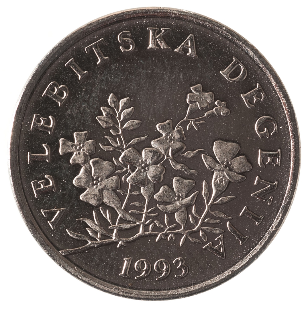 Avers: U središnjem dijelu nominala "50 LIPA", a u pozadini prikaz stilizirane grane lipe u cvatu. U gornjem polukrugu, uz rub, natpis "REPUBLIKA HRVATSKA". Uz donji rub, u središnjem dijelu, prikaz grba Republike Hrvatske od kojeg je lijevo i desno prikaz pleterne ornamentike. Revers: U središnjem dijelu stilizirani prikaz endemske biljke velebitske degenije. Iznad prikaza, kružno uz rub, natpis "VELEBITSKA DEGENIJA". Uz donji rub, u središnjem dijelu, godina kovanja.