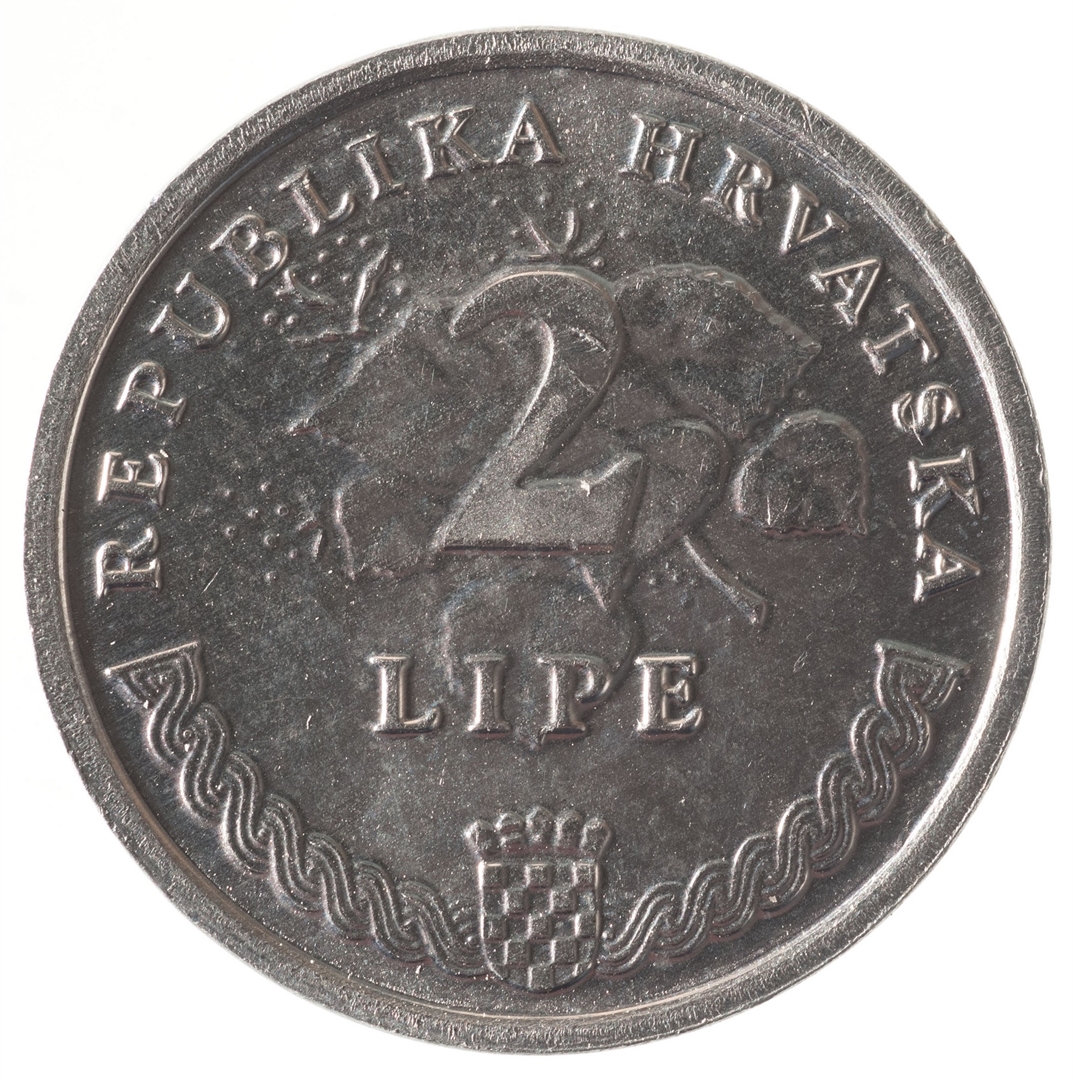 U središnjem dijelu nominala "2 LIPE", a u pozadini prikaz stilizirane grane lipe u cvatu. U gornjem polukrugu, uz rub, natpis "REPUBLIKA HRVATSKA". Uz donji rub, u središnjem dijelu, prikaz grba Republike Hrvatske od kojeg je lijevo i desno prikaz pleterne ornamentike.