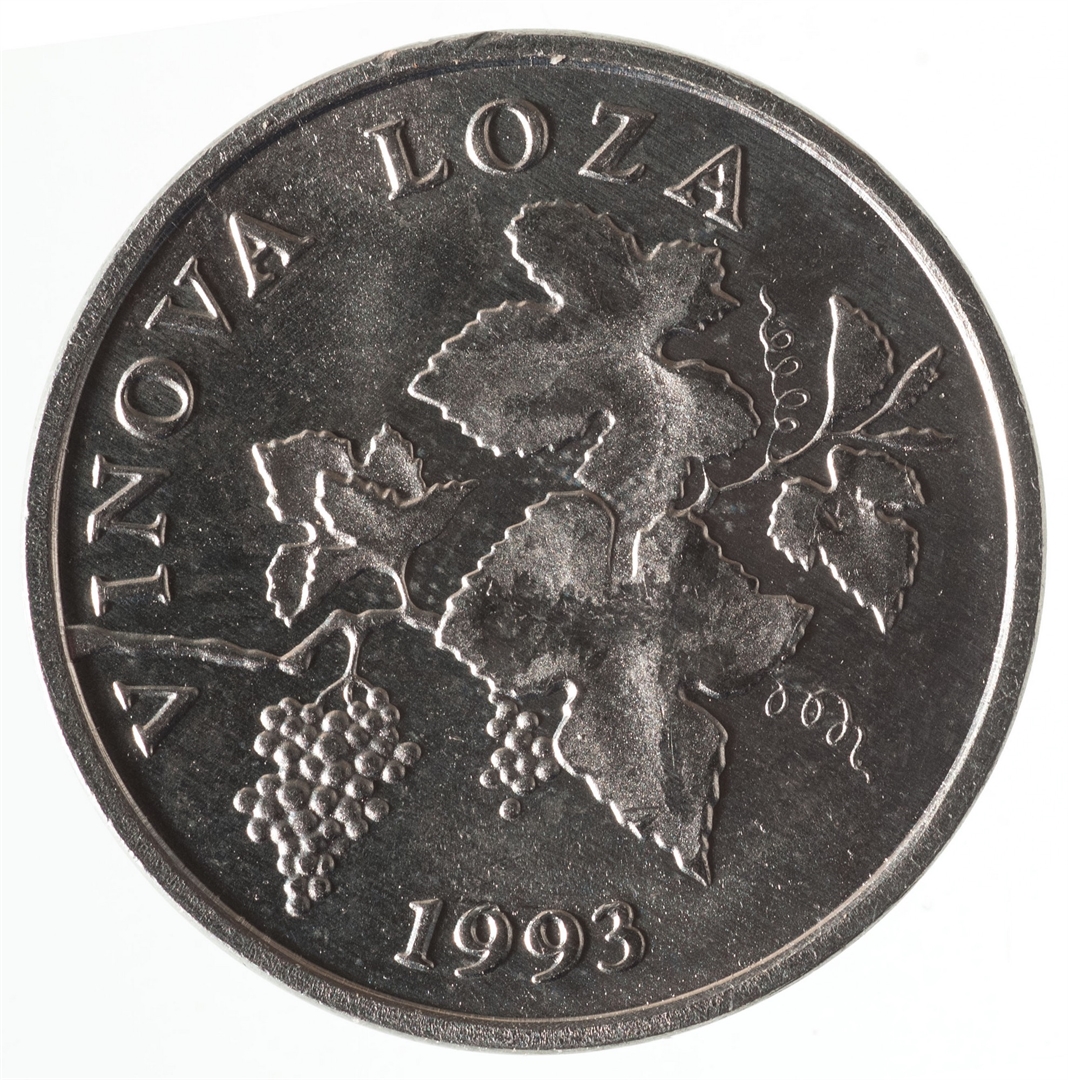 U središnjem dijelu prikaz stilizirane grane vinove loze, s grozdom. Iznad prikaza, kružno uz rub, natpis "VINOVA LOZA". Uz donji rub, u središnjem dijelu, godina kovanja.