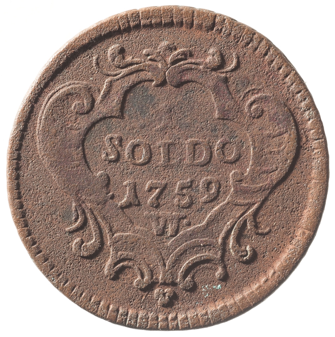 Avers: U sredini, unutar ukrašenog okvira iznad kojeg je kruna, nalazi se grb Gorice sa propetim lavom. Revers: U sredini unutar ukrašenog okvira nalazi se oznaka vrijednosti novca 1 Soldo. Ispod nje nalazi se godina 1759 i oznaka kovnice W.