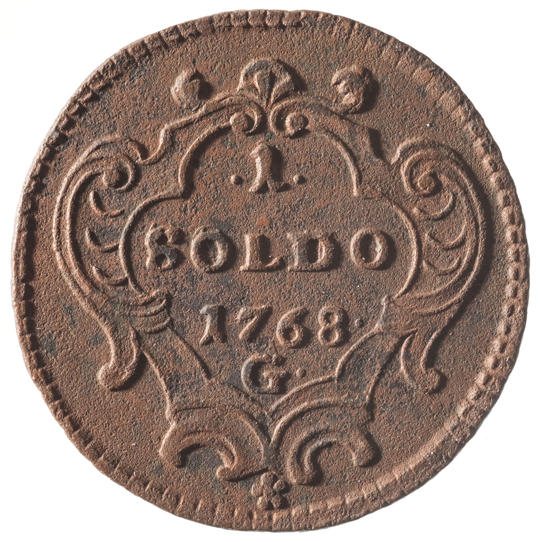 Avers: U sredini, unutar ukrašenog okvira iznad kojeg je kruna, nalazi se grb Gorice sa propetim lavom. Revers: U sredini unutar ukrašenog okvira nalazi se oznaka vrijednosti novca 1 Soldo. Ispod nje nalazi se godina 1768 i oznaka kovnice G.