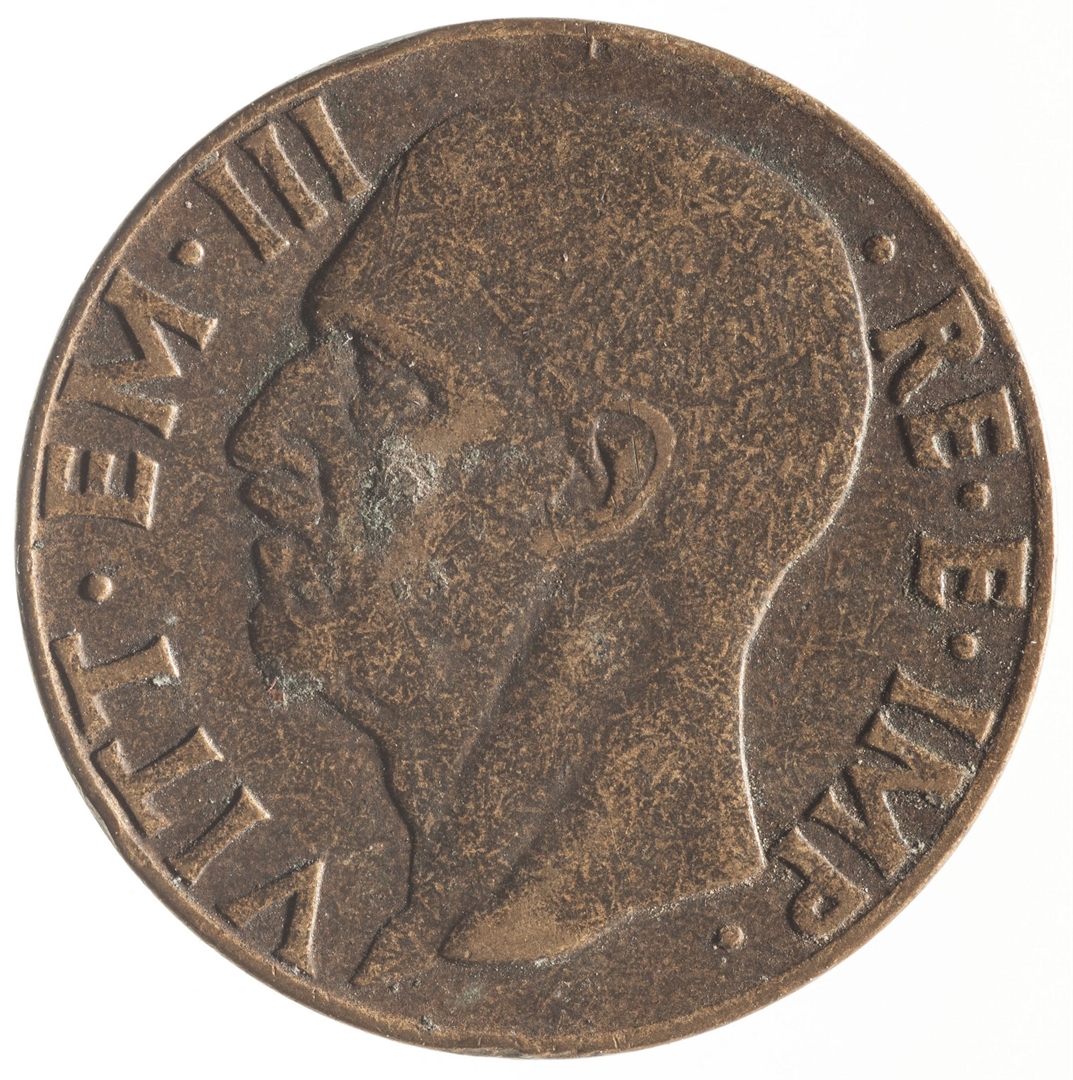 Avers: Centralni dio kovanice zauzima profil osobe sa pogledom u lijevo. Uz rub cijele kovanice proteže se natpis VITTORIO EMANVELE III RE D''ITALIA. Revers: Centralno mjesto na kovanici zauzima fascio sa grbom. Iznad njega polukružno uz rub nalazi se natpis ITALIA, sa njegove lijeve strane smjestio se klas žita, a sa desne dva hrastova lista. Na dnu sa lijeve strane fascia nalazi se godina 1942., a sa njegove desne strane rimski broj XX.