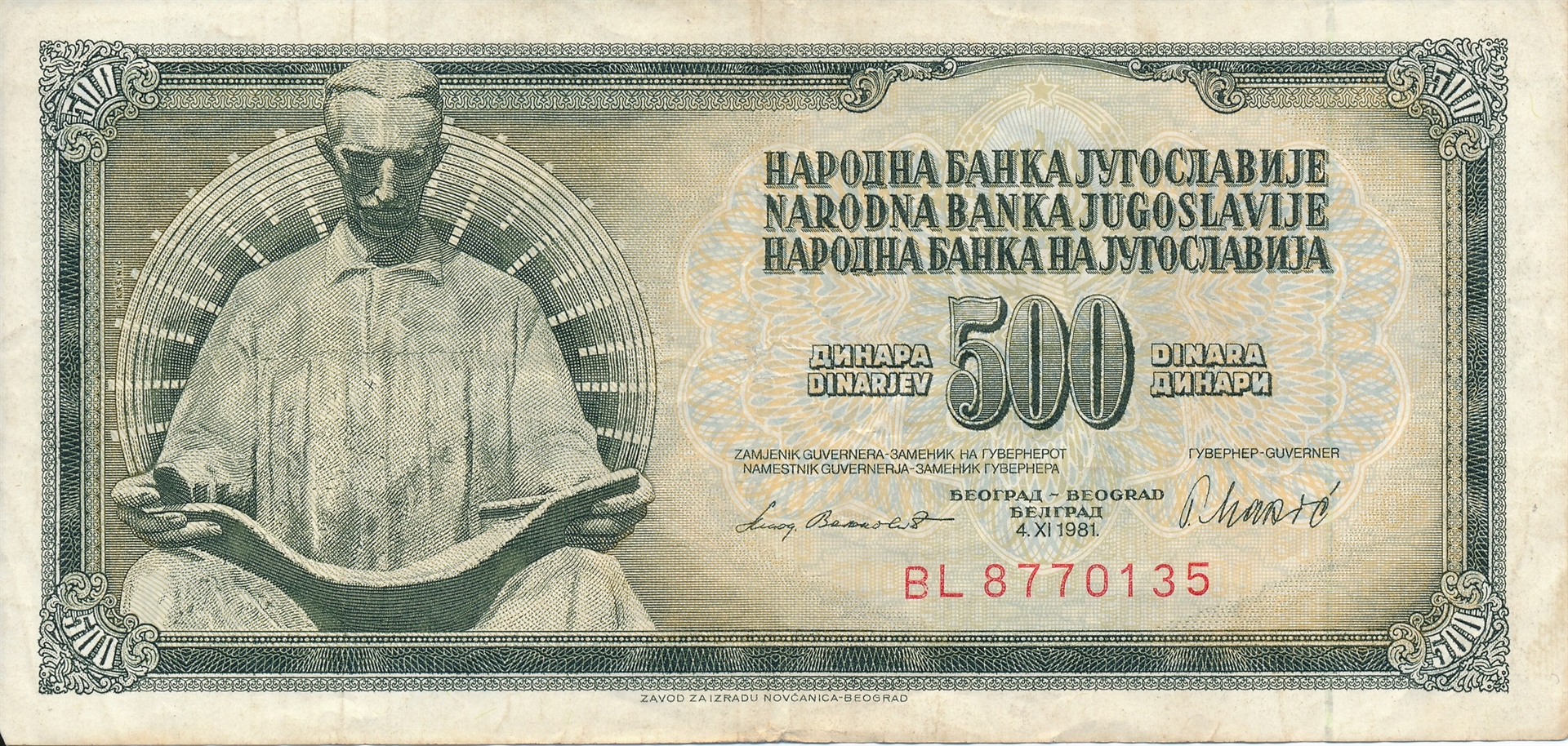 U sredini se nalazi nominala i tekst na četiri jezika.