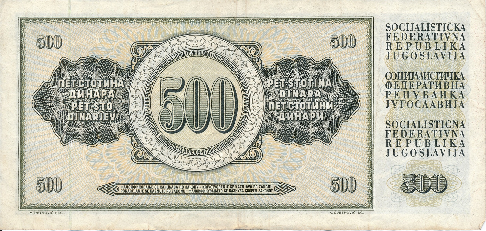 Na lijevoj strani prikaz Nikole Tesle. Na desnoj strani nalazi se serijski broj, potpisi i nominala.