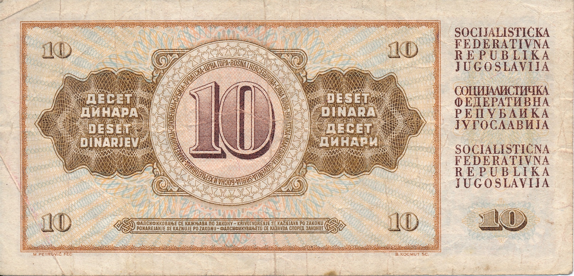 U sredini se nalazi nominala i tekst na četiri jezika.