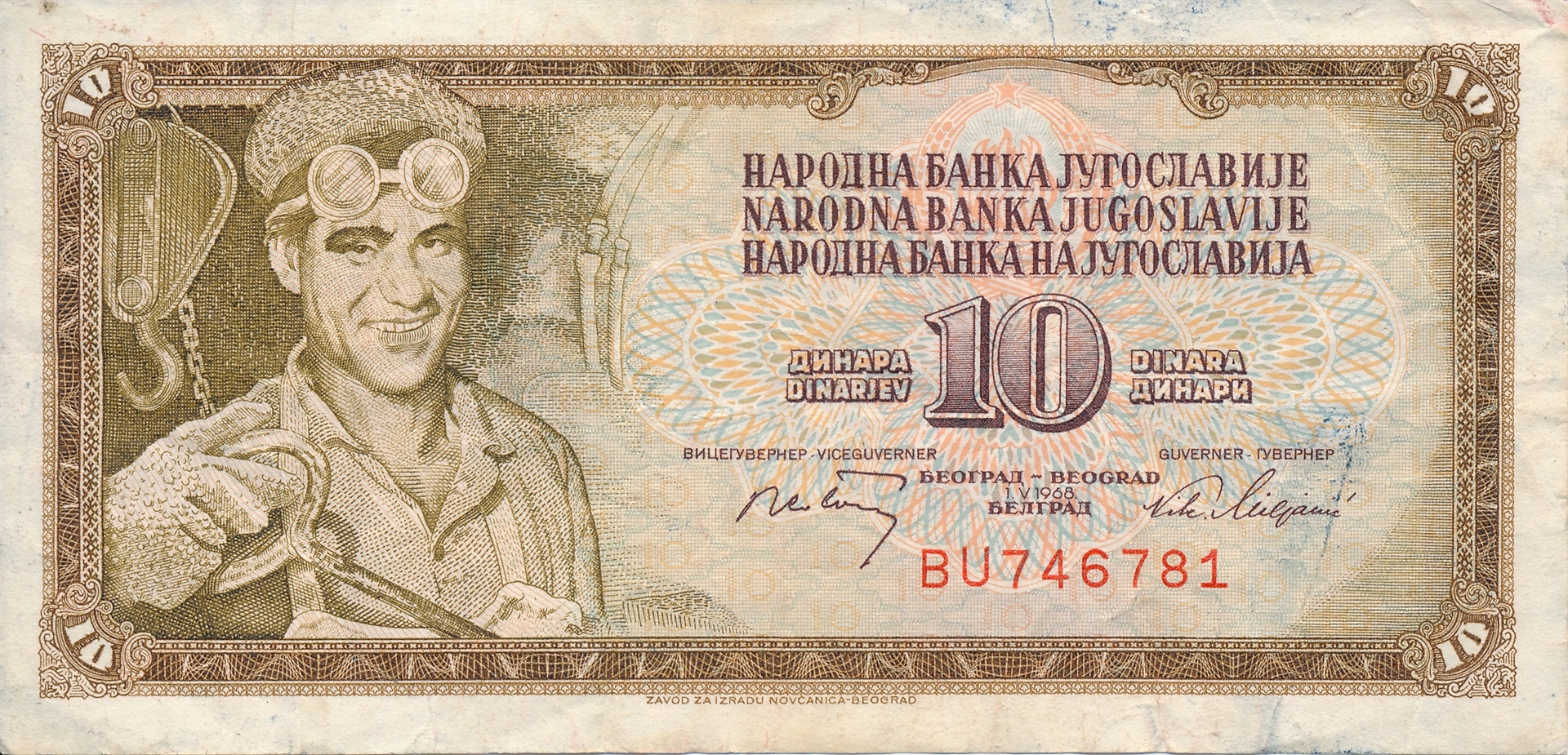 Na lijevoj strani prikaz radnika u željezari. Na desnoj strani nalazi se serijski broj, potpisi i nominala.