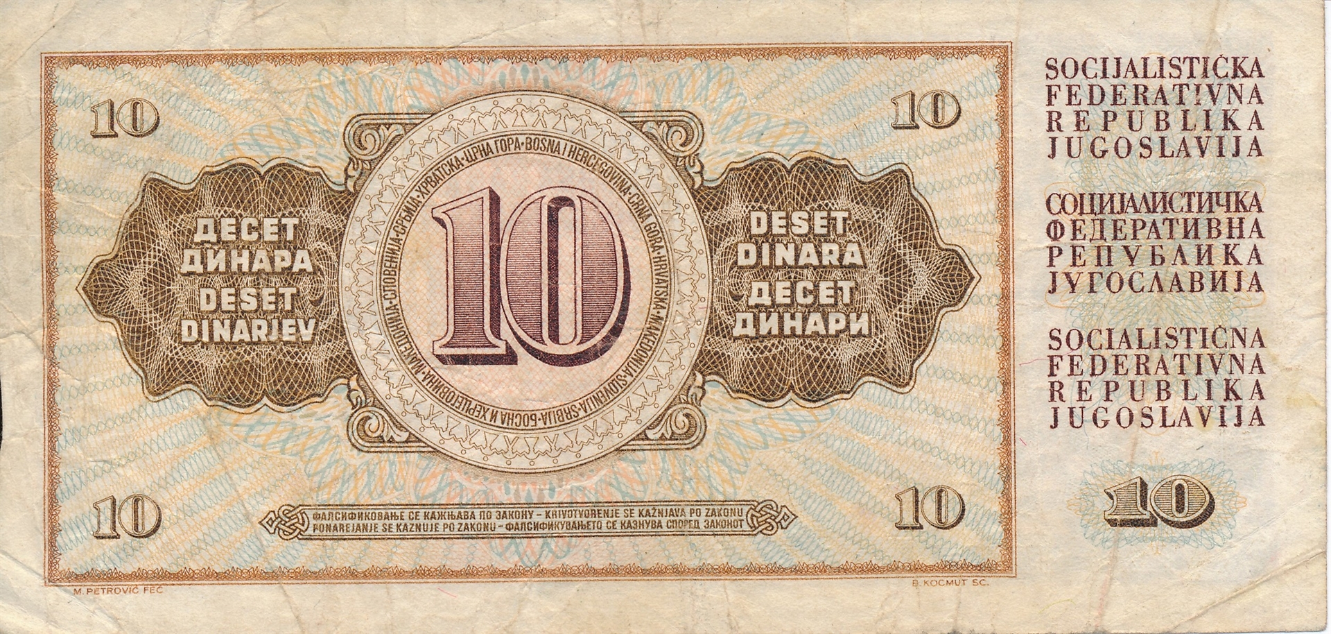 U sredini se nalazi nominala i tekst na četiri jezika.
