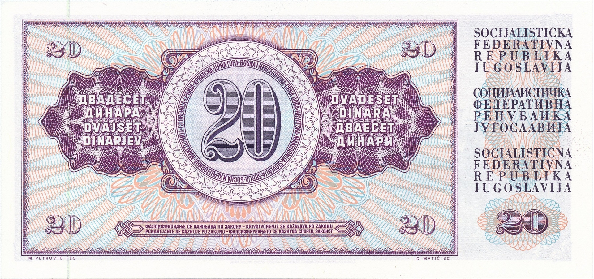 U sredini se nalazi nominala i tekst na četiri jezika.