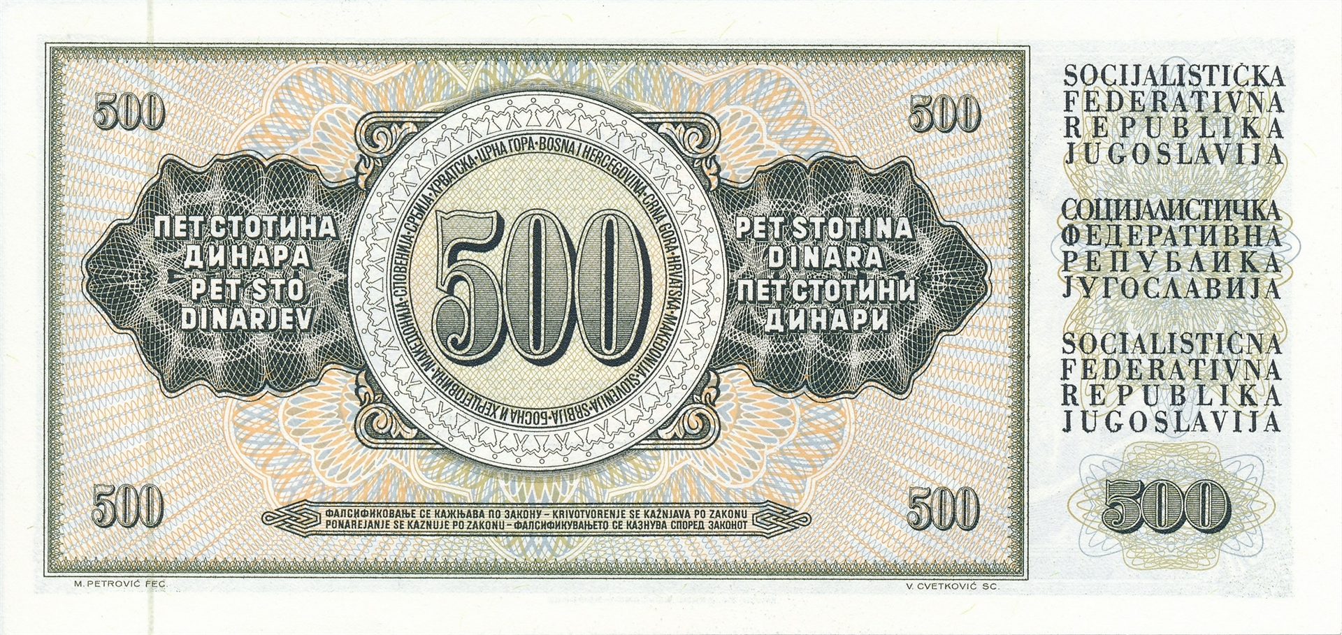 Na lijevoj strani prikaz Nikole Tesle. Na desnoj strani nalazi se serijski broj, potpisi i nominala.