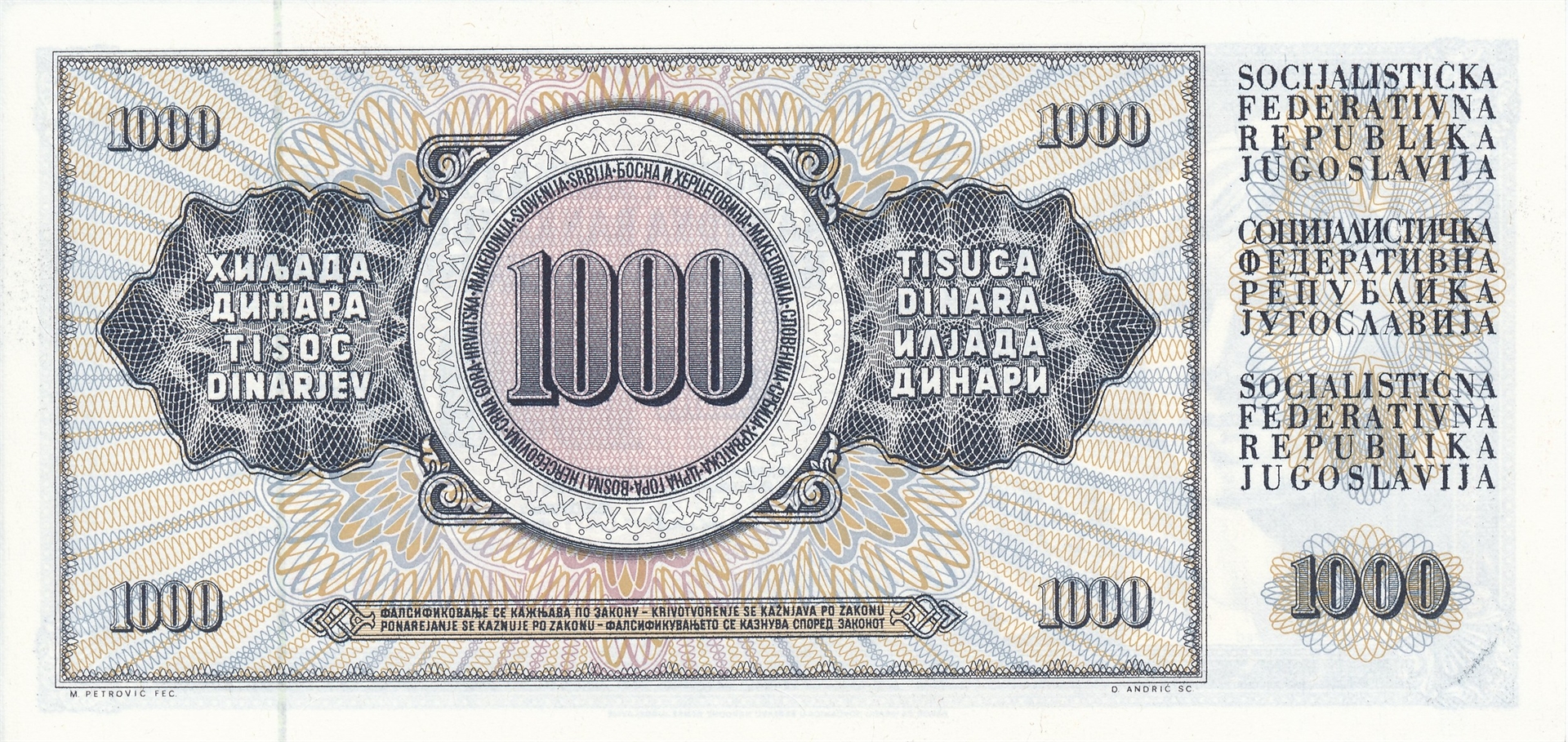 U sredini se nalazi nominala i tekst na četiri jezika.