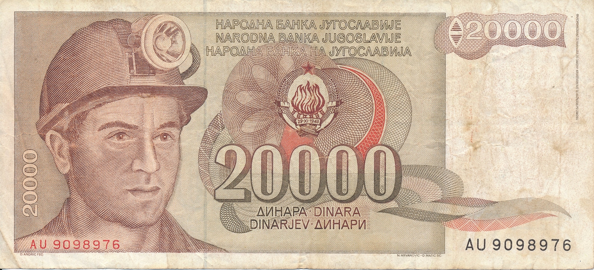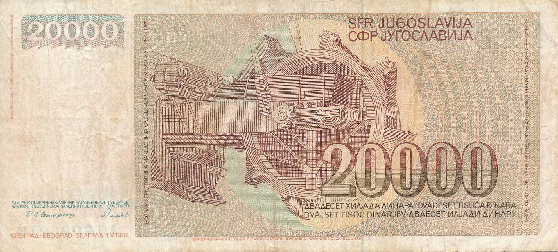Na lijevoj strani nalazi se prikaz rudara, a u središnjem djelu državni grb, nominala i serijski broj.