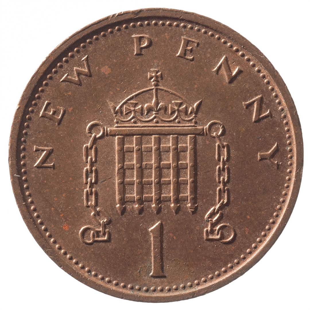 Avers: U sredini profil kraljice Elizabete II u lijevo. Sa lijeve istrane u dva djela tekst ELIZABETH·II D·G·REG·F·D·1977. Revers: U sredini se nalazi okrunjeni postikul sa lancima. Uz gornji rub polukružni natpis NEW PENNY a uz donji rub broj 1.