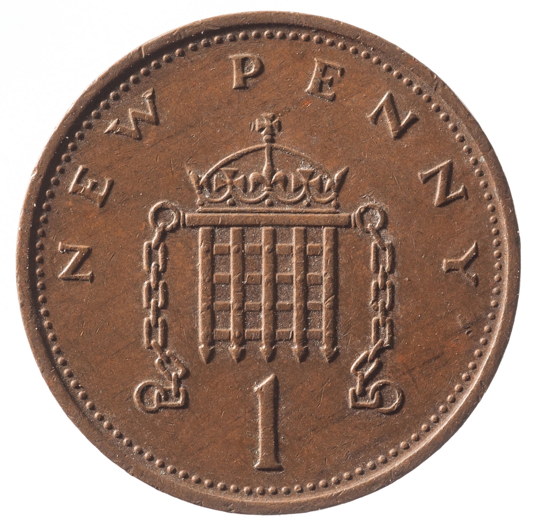 U sredini se nalazi okrunjeni postikul sa lancima. Uz gornji rub polukružni natpis NEW PENNY a uz donji rub broj 1.