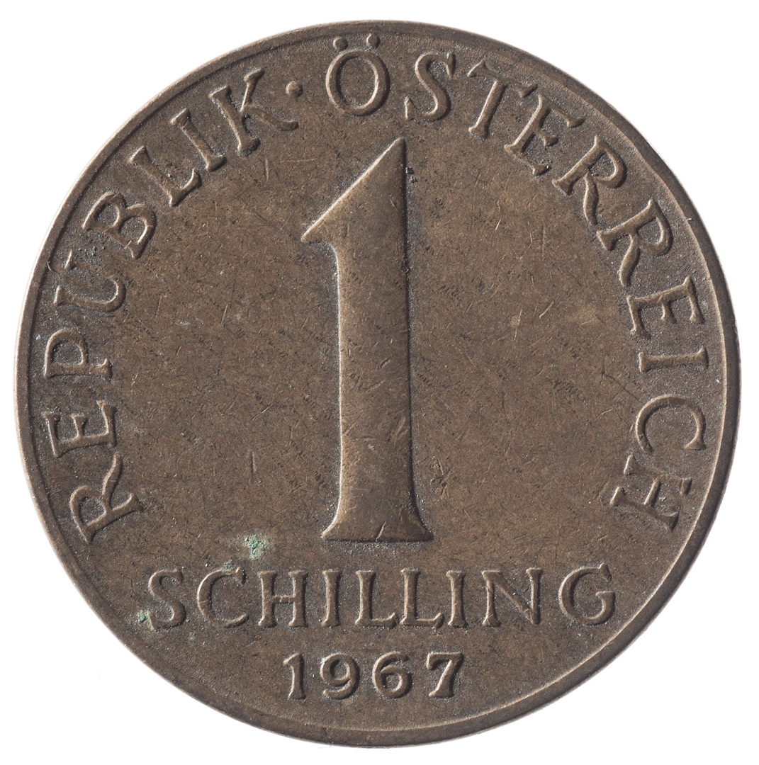U sredini veliki broj 1, a ispod njega tekst SCHILLING i godina kovanja.