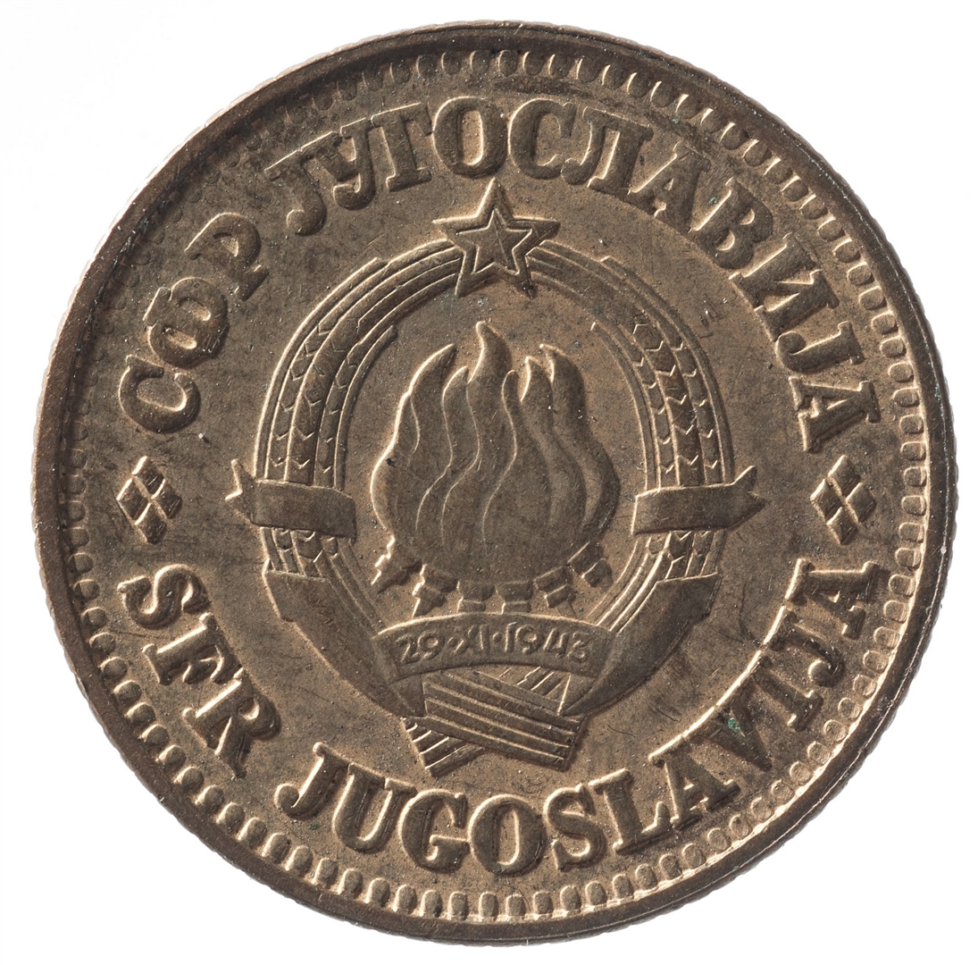 U sredini državni grb. U gornjem djelu uz rub polukružno napisan tekst SFR JUGOSLAVIJA na latinici i ćirilici.
