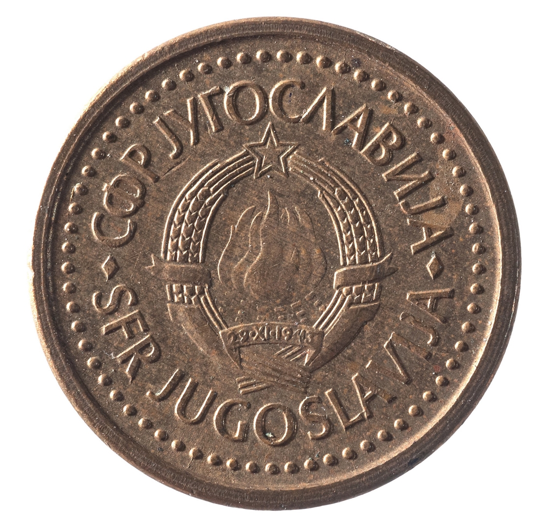 U sredini državni grb. U oko njega uz rub polukružno napisan tekst SFR JUGOSLAVIJA na latinici i ćirilici.