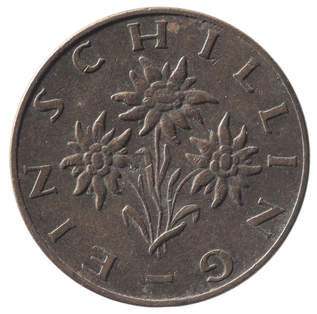 U sredini veliki broj 1, a ispod njega tekst SCHILLING i godina kovanja.