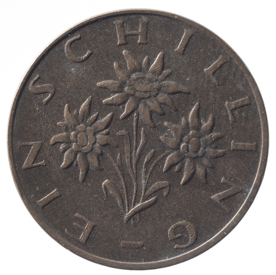 U sredini veliki broj 1, a ispod njega tekst SCHILLING i godina kovanja.