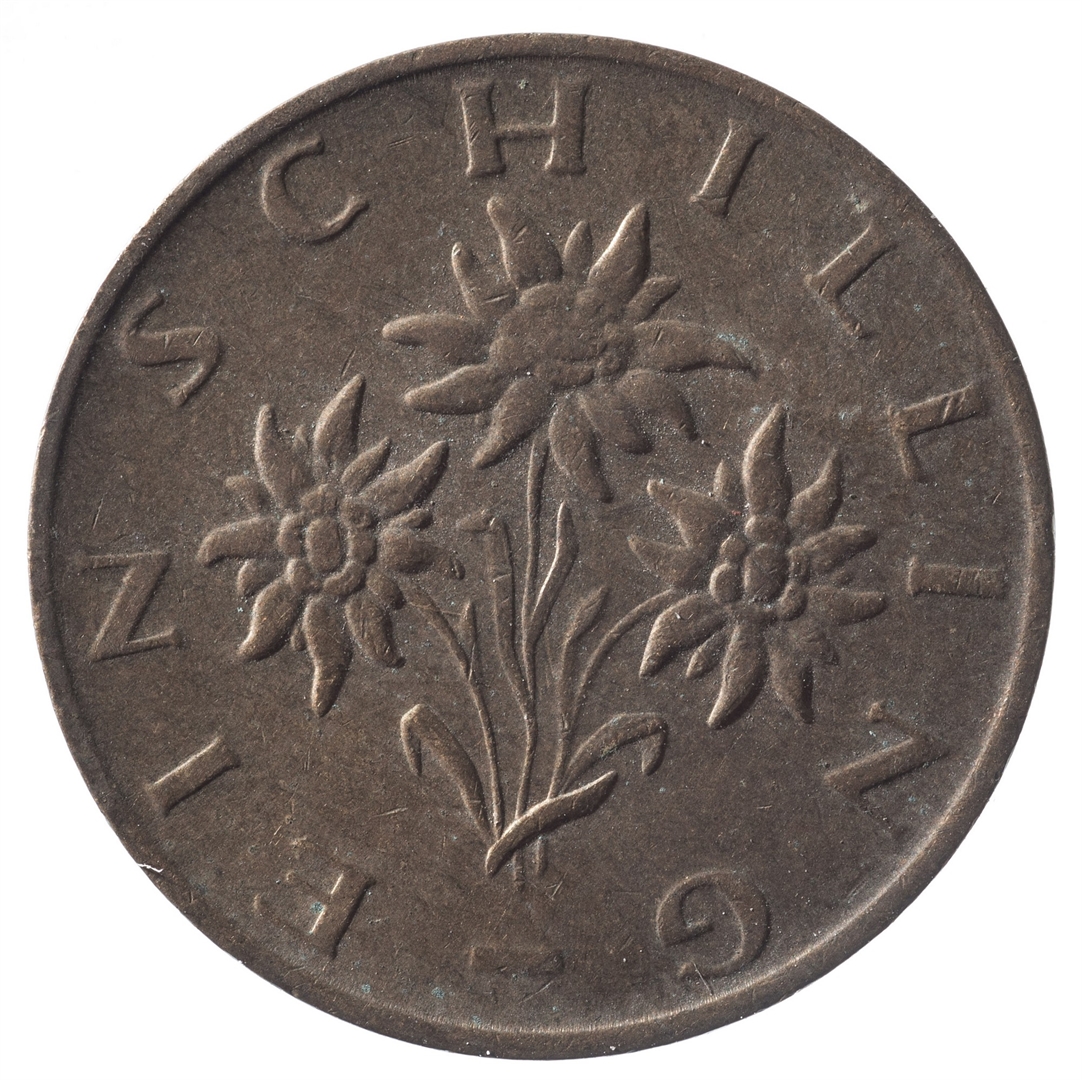 U sredini veliki broj 1, a ispod njega tekst SCHILLING i godina kovanja.
