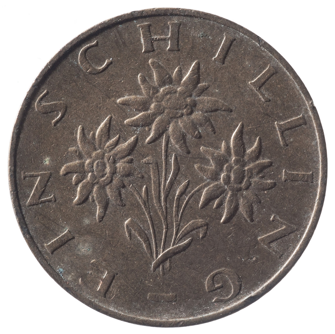 U sredini veliki broj 1, a ispod njega tekst SCHILLING i godina kovanja.