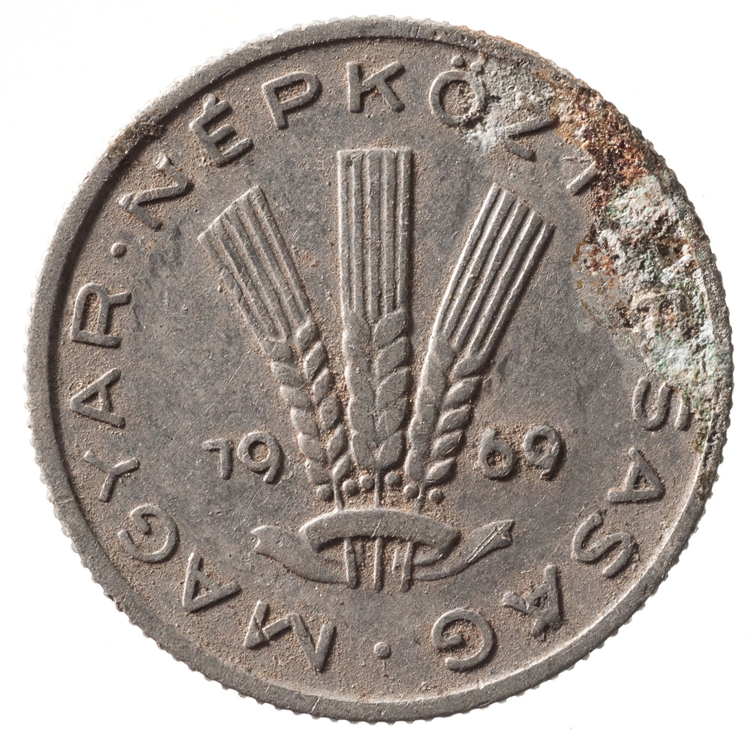 U sredini tri klasa pšenice koji djele godinu kovanja na dva djela. Uz rub kružni natpis MAGYAR · NÉPKÖZTÁRSASÁG ·