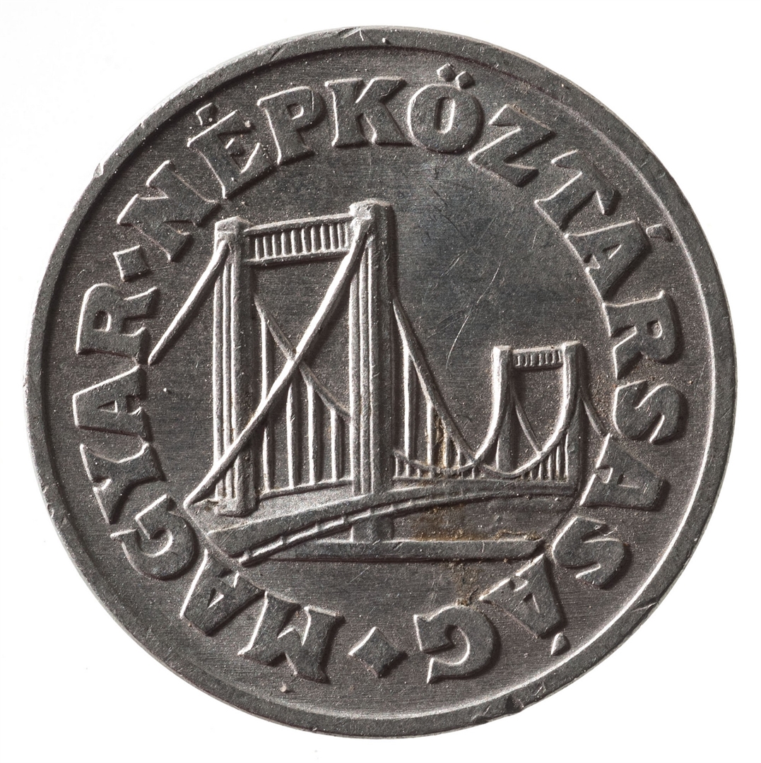 U centru se nalazi prikaz Elizabetinog mosta u Budimpešti. Oko njega natpis MAGYAR · NÉPKÖZTÁRSASÁG ·