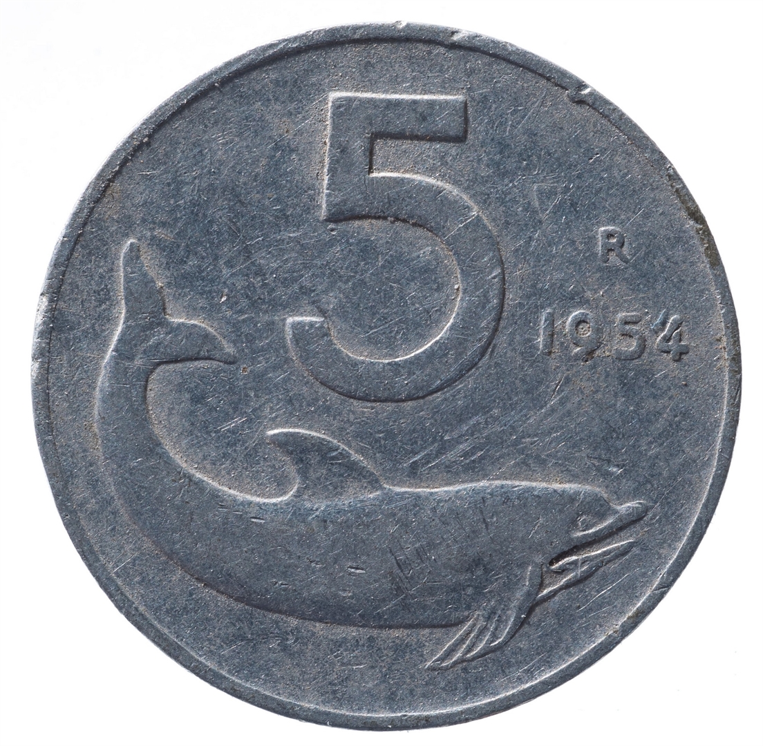 U gornjem djelu veliki broj 5 ispod kojeg se nalazi prikaz delfina. Na desnoj strani slovo P ispod kojeg se nalazi godina kovanja.