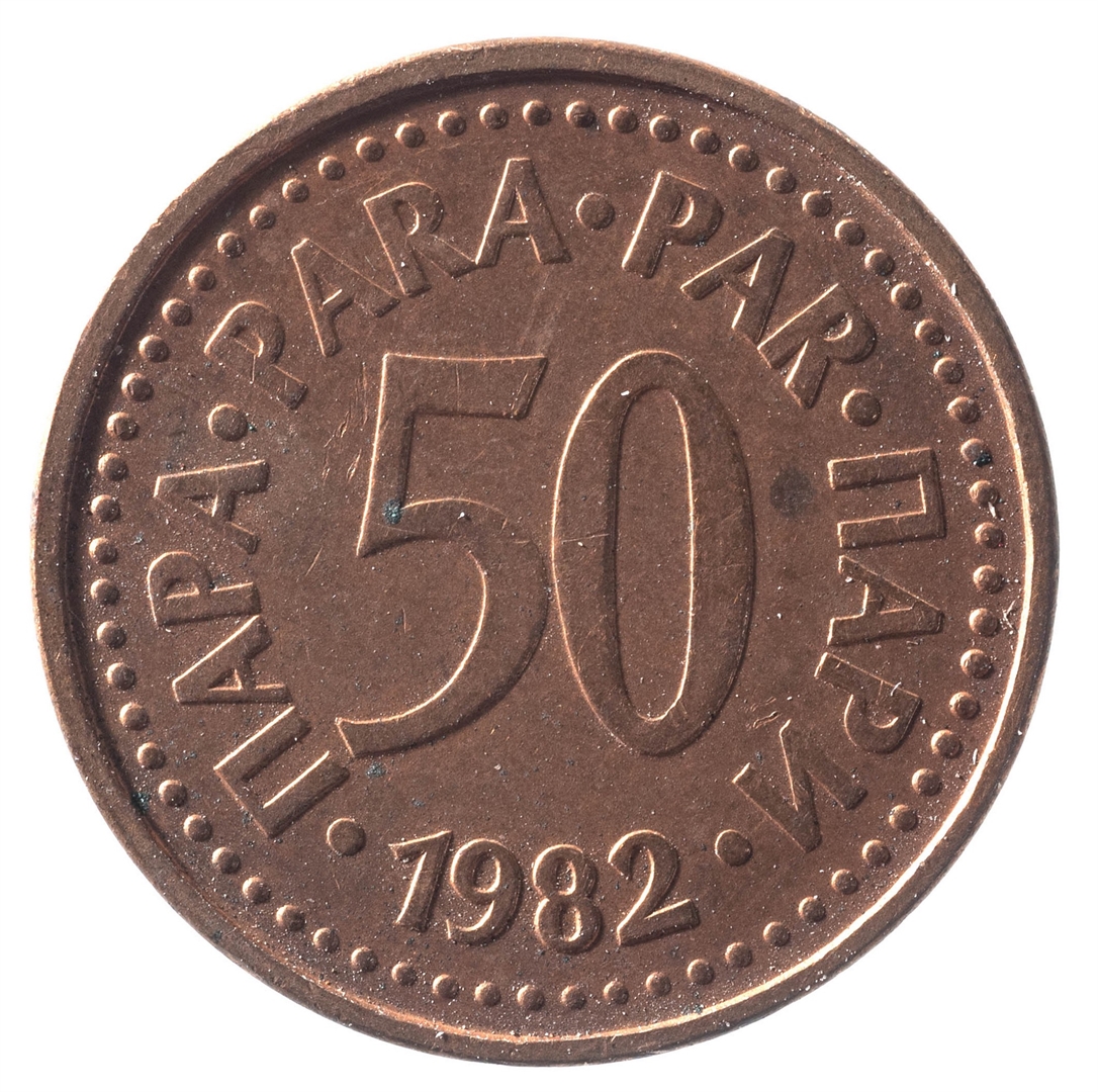 Avers: U sredini državni grb. U oko njega uz rub polukružno napisan tekst SFR JUGOSLAVIJA na latinici i ćirilici. Revers: U sredini broj 50 (nominala), oko njega tekst PARA na četiri jezika, a ispod toga godina 1982.
