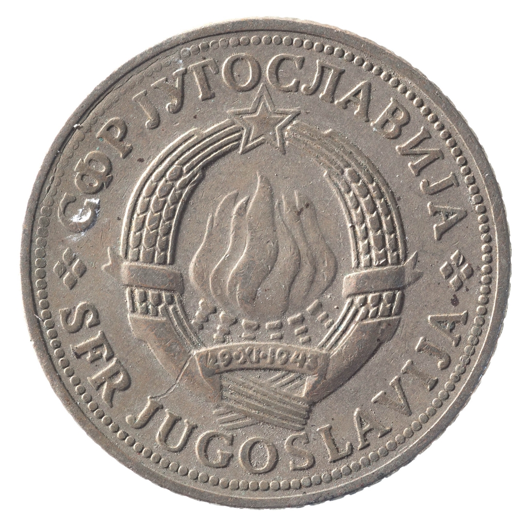 U sredini državni grb. U oko njega uz rub polukružno napisan tekst SFR JUGOSLAVIJA na latinici i ćirilici.