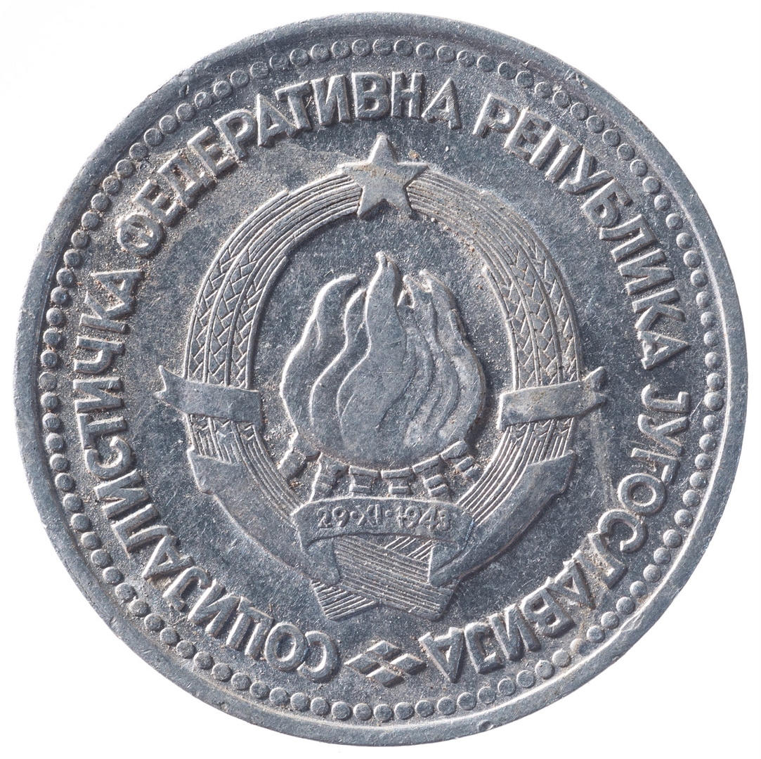 U sredini državni grb. U gornjem djelu uz rub polukružno napisan tekst SOCIJALISTIČKA FEDERATIVNA REPUBLIKA JUGOSLAVIJA na ćirilici.