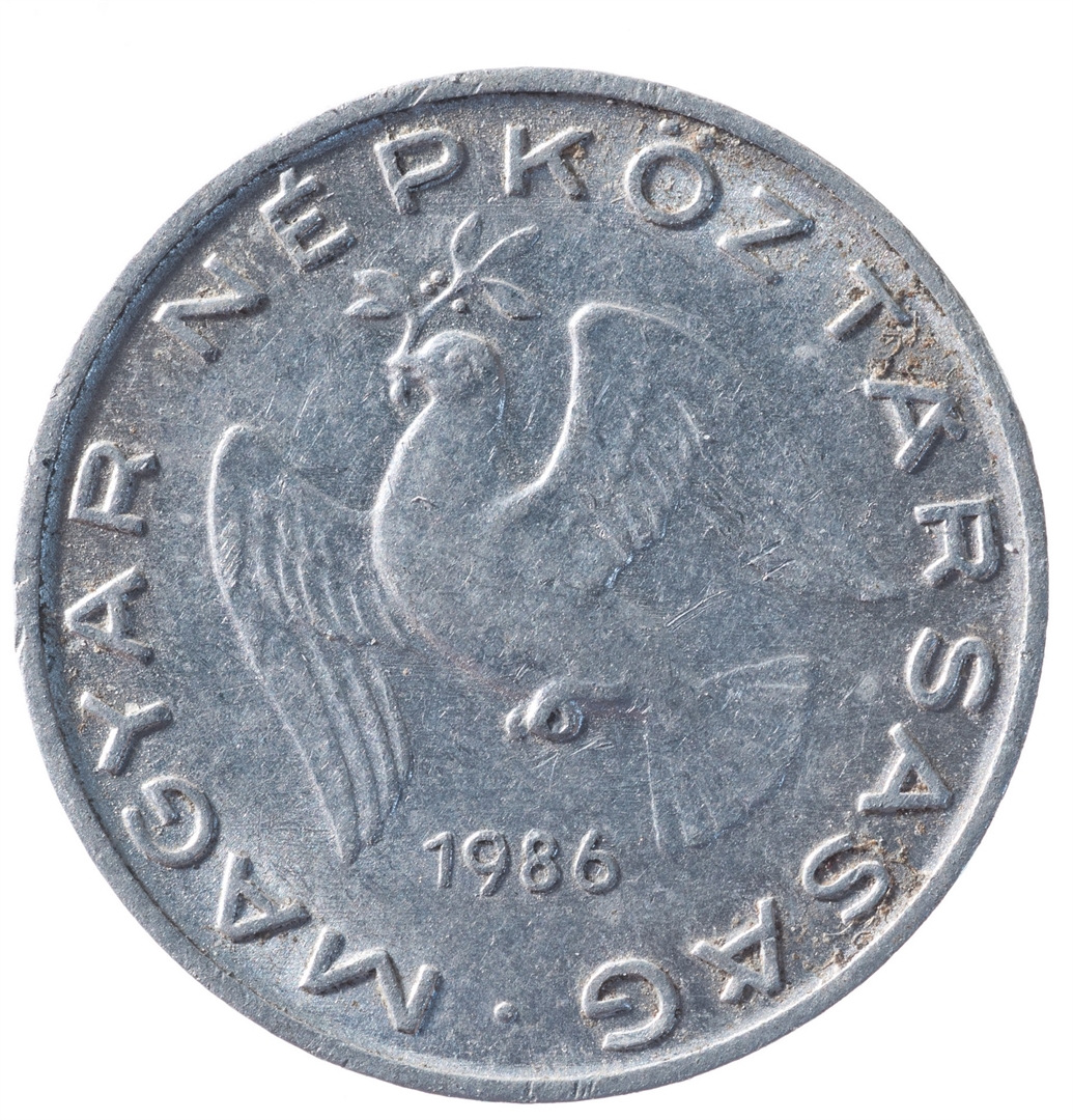 U centralnom djelu prikaz golubice koja u kljunu nosi maslinovu grančicu, a ispod nje godina kovanja. Uz rub kružni natpis MAGYAR NÉPKÖZTÁRSASÁG ·