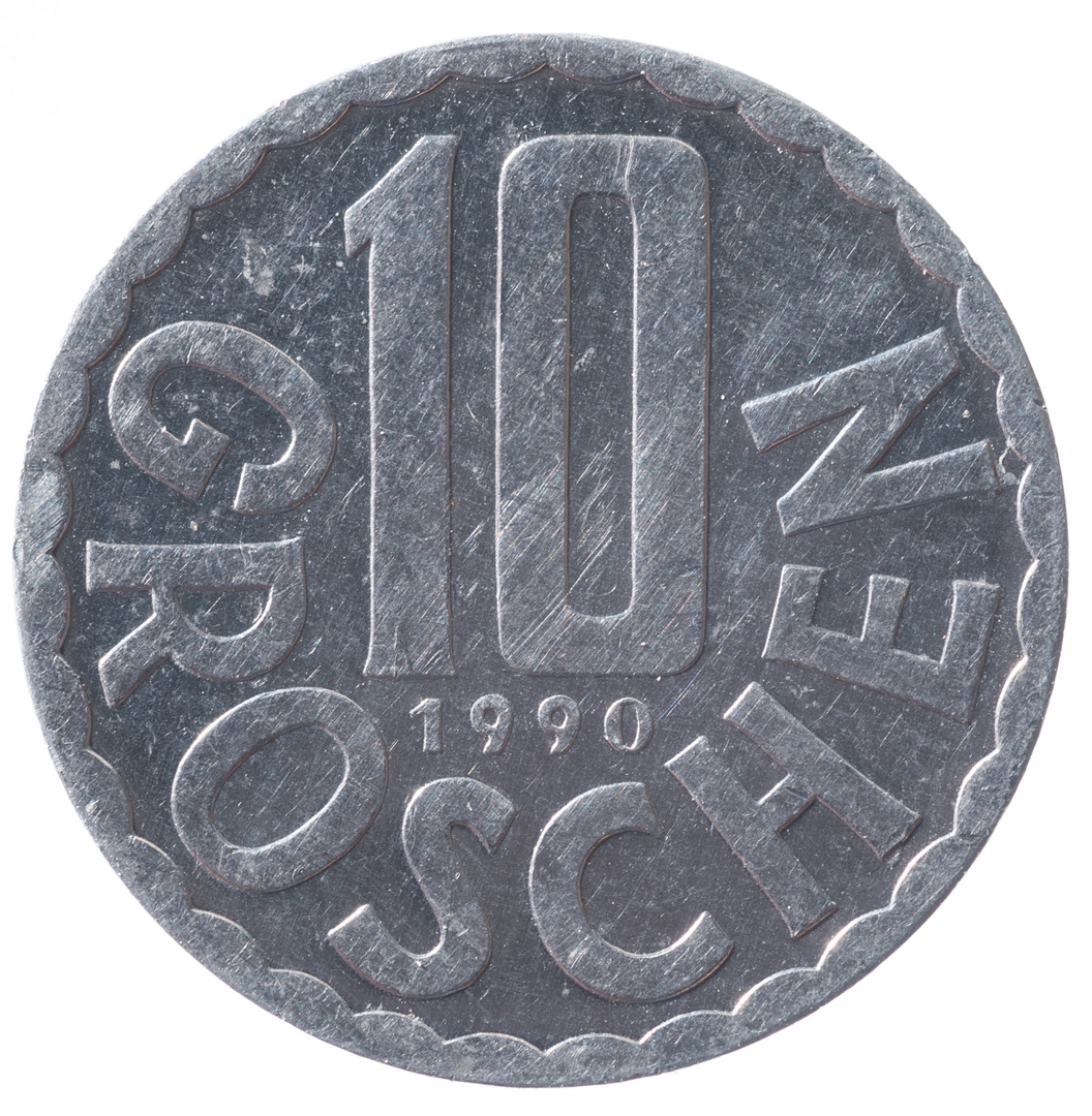 Nominala ispod koje se nalazi godina kovanja. Kružno uz rub tekst GROSCHEN.