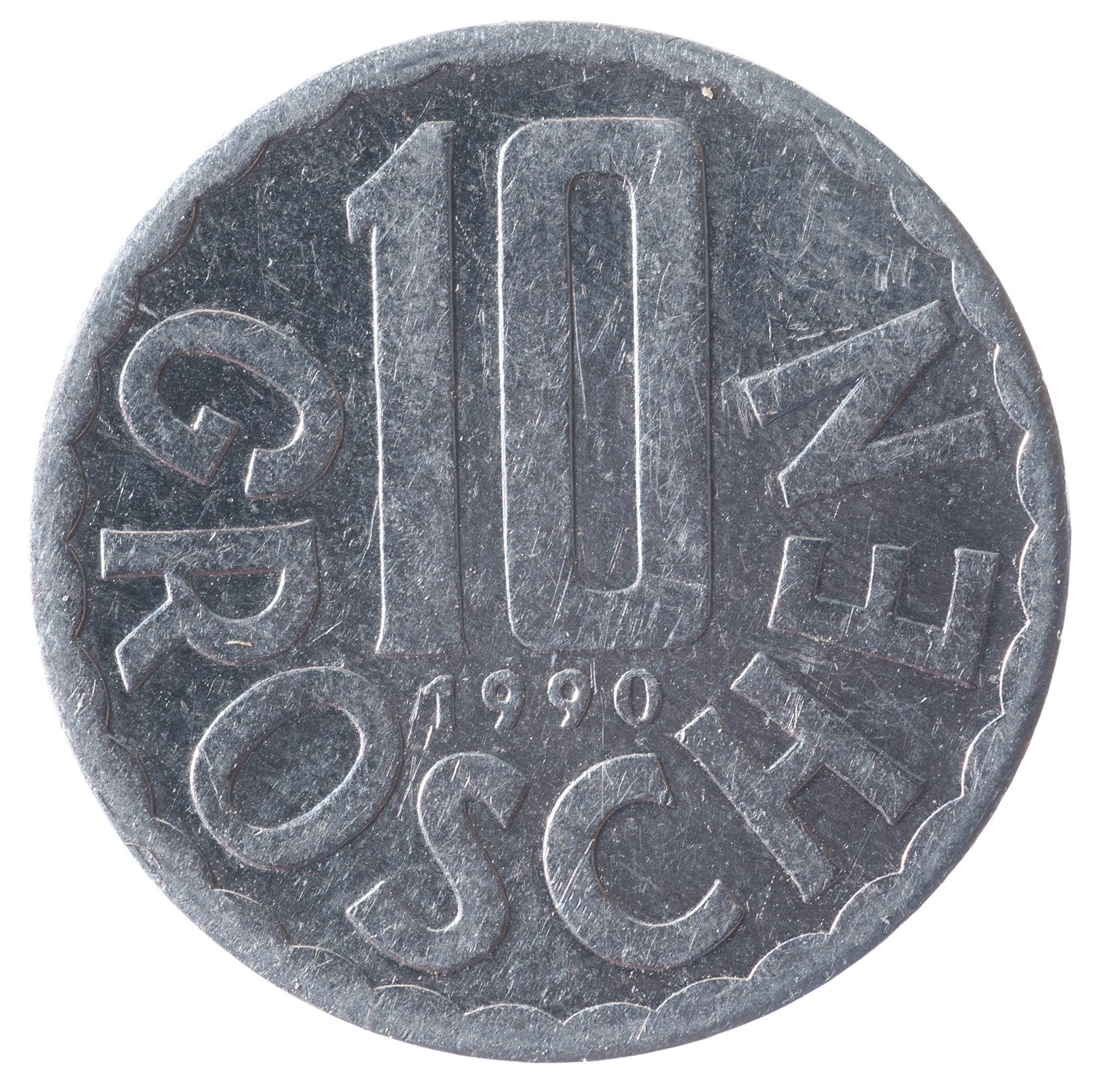 Nominala ispod koje se nalazi godina kovanja. Kružno uz rub tekst GROSCHEN.