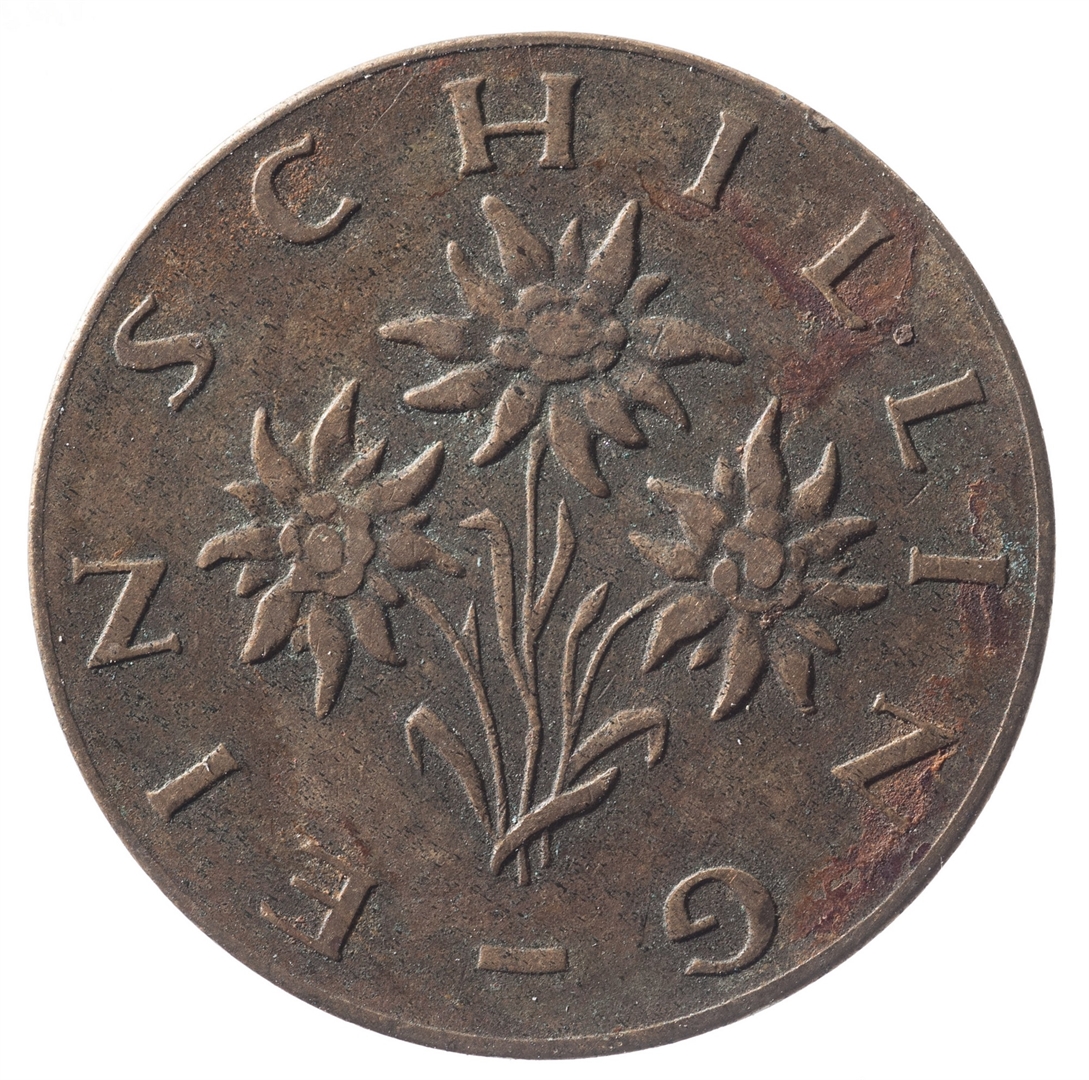 U sredini veliki broj 1, a ispod njega tekst SCHILLING i godina kovanja.