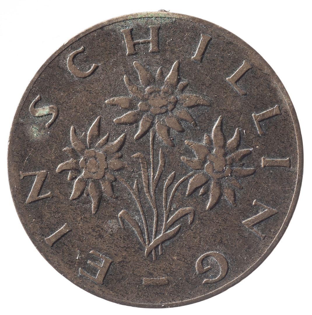U sredini veliki broj 1, a ispod njega tekst SCHILLING i godina kovanja.