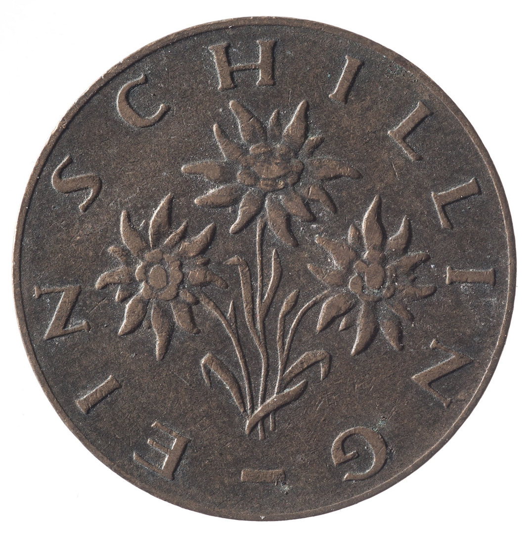 U sredini veliki broj 1, a ispod njega tekst SCHILLING i godina kovanja.