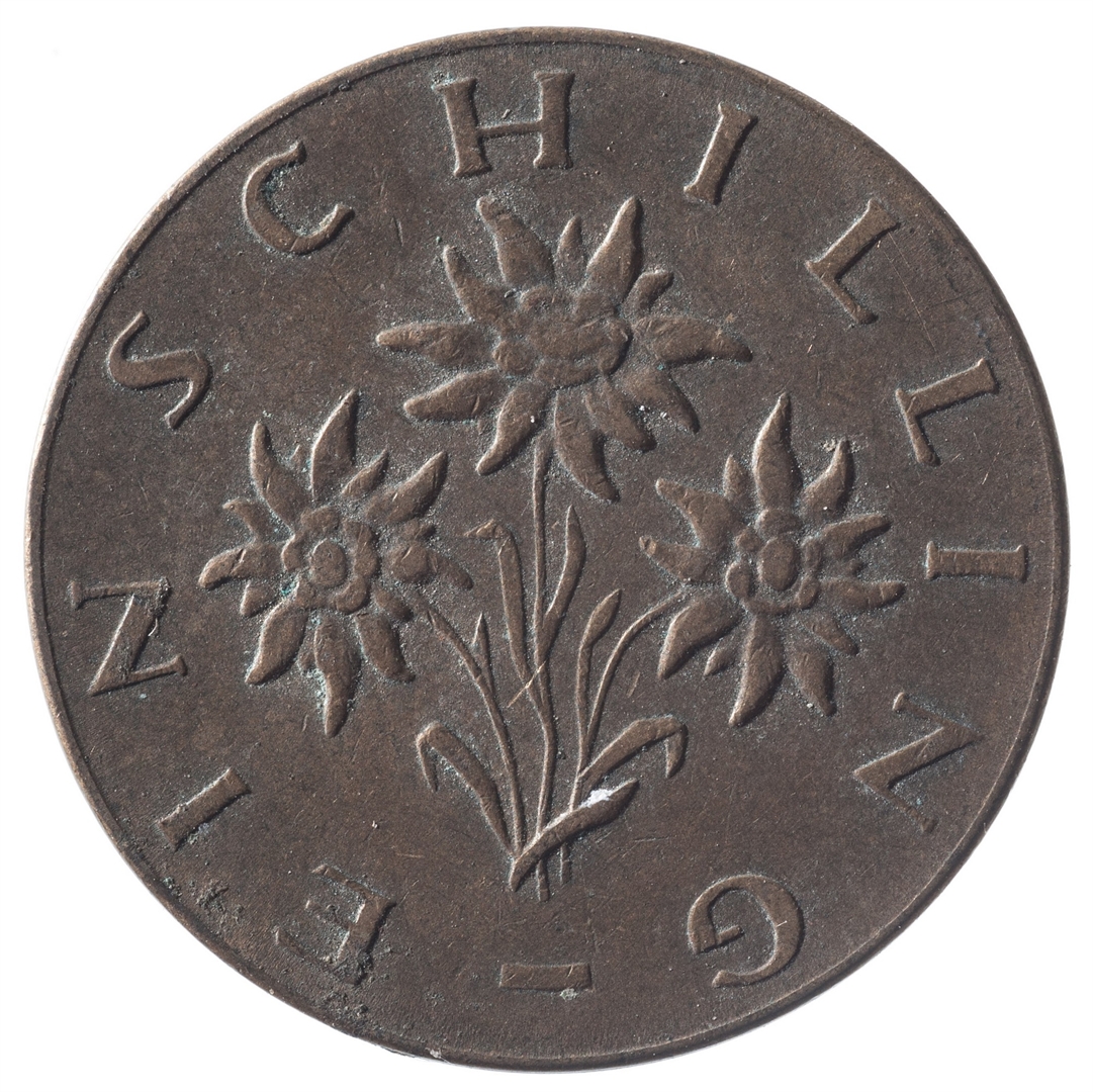 U sredini veliki broj 1, a ispod njega tekst SCHILLING i godina kovanja.